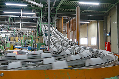 裁断されて次々と流れてくる