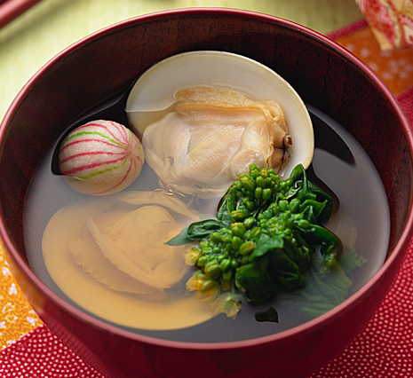 色とりどり華やかちらし寿司やはまぐりのお吸い物で。